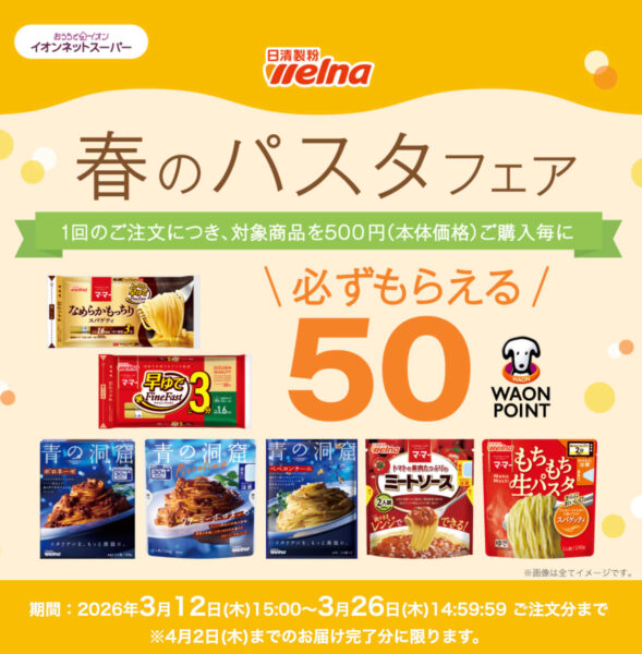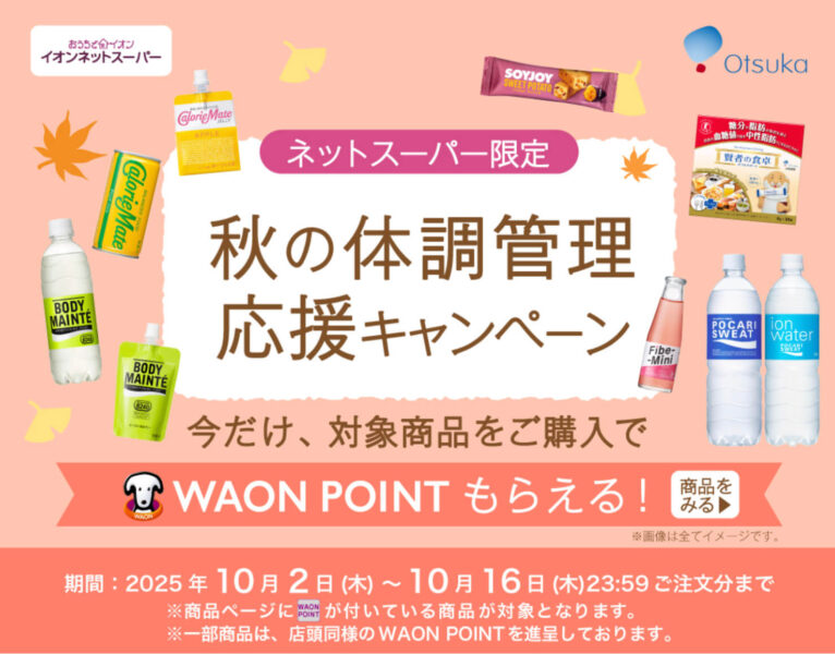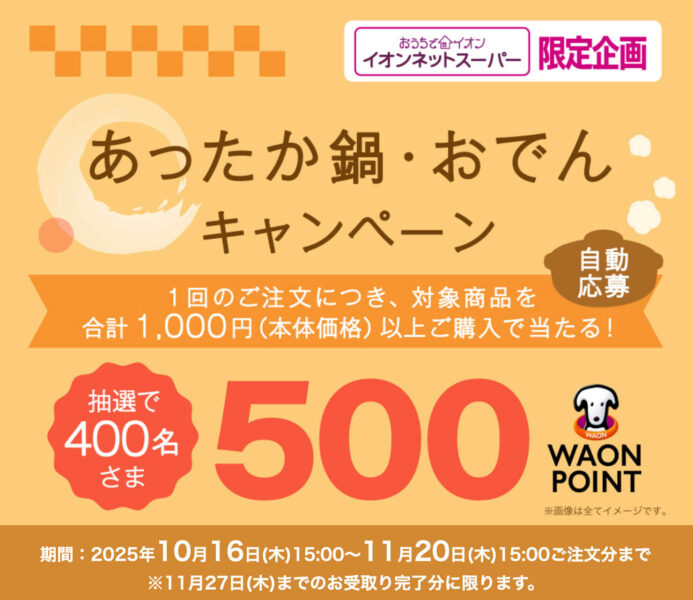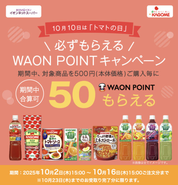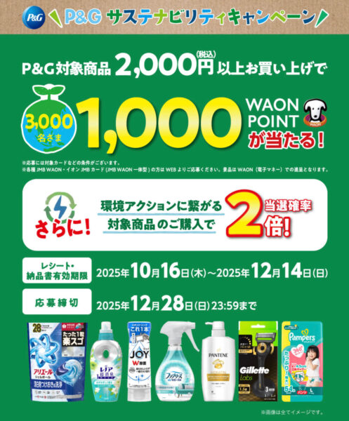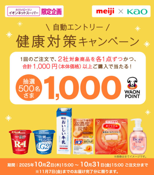 対象商品を買いすれば、抽選で500WAONポイントがもらえるキャンペーンが実施中です。