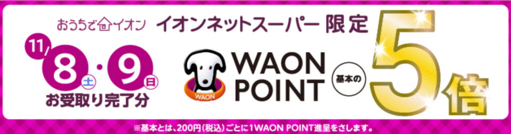 WAON POINTを基本の5倍進呈【25/8/16,17】