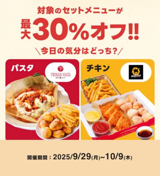 【人気店舗】対象セットメニュー30%オフ!【25/6/12まで】