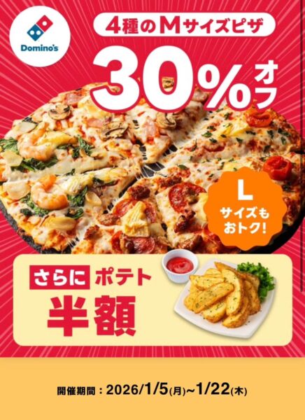 【ドミノ・ピザ】対象商品半額キャンペーン【25/5/6まで】