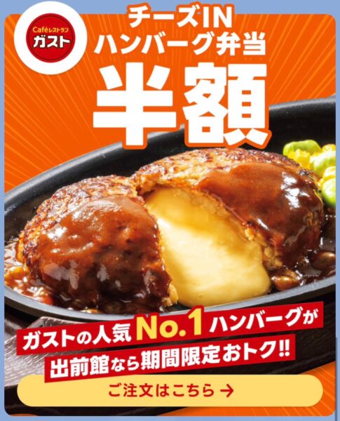 【ガスト】対象商品20%オフキャンペーン【25/7/16まで】