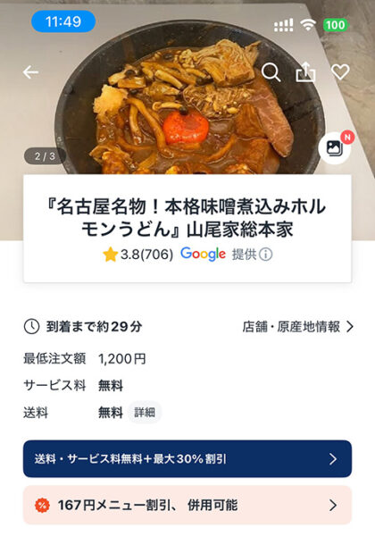 - 名古屋エリアのおすすめ店舗で注文するとお得