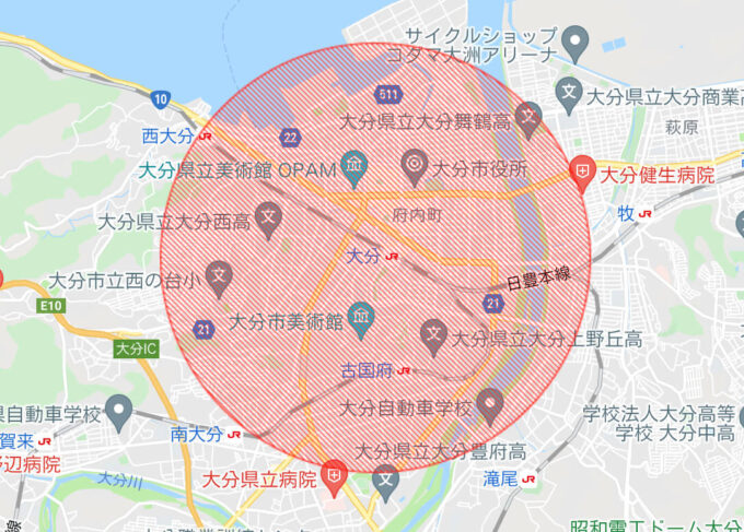 大分県大分市のWolt(ウォルト)配達対応エリア【未オープン】